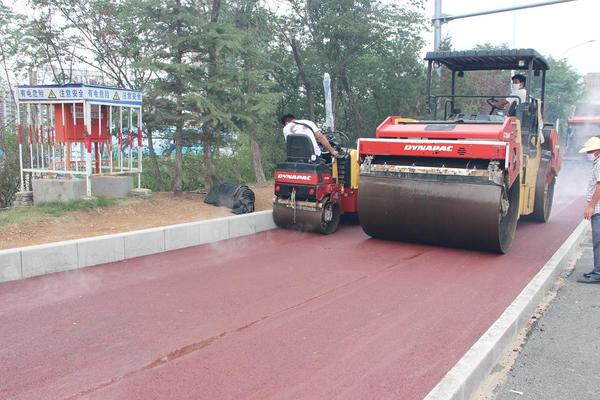 7月11日下午,攤鋪項目部對旅游路工程涵玉翠嶺段北半幅慢車道進行了彩色瀝青的攤鋪施工,本次攤鋪施工在全體項目部人員的團結(jié)協(xié)作下,歷時3小時順利完成。施工過程中質(zhì)檢人員嚴格監(jiān)測平整度和壓實度等質(zhì)量問題,全程質(zhì)檢跟蹤監(jiān)測,嚴把質(zhì)量關(guān)。攤鋪過程中,施工人員根據(jù)彩色瀝青的施工要求,特別注意施工過程的策劃和清潔控制,從出料、運輸、現(xiàn)場施工中的清潔處理都做了詳細的安排和要求,攪拌站工作人員和現(xiàn)場施工人員緊密協(xié)作,圓滿完成了該段彩色瀝青的攤鋪施工。彩色的路面與旅游路周圍的青山綠水相映成趣,仿佛一條彩帶貫穿于青蔥之間,成為一道亮麗的風景。