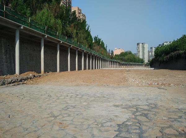 興濟河生態(tài)綜合治理工程項目部克服市區(qū)渣土清運時間受限、河道內(nèi)工作面狹小的困難,積極組織人員、機械,優(yōu)化施工部署,順利完成河底土方外運17000立方、河底造型8950平方、攔水壩5座、棧道基礎(chǔ)84座、棧道柱98棵等河道內(nèi)施工項目,目前正有序進行最后一聯(lián)棧道板施工,現(xiàn)河道已開始蓄水,為下一步水生植物種植做好施工準備。