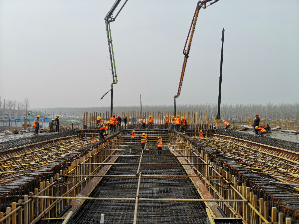 近日,匯通公司承建的沭陽快速路二期工程義烏路--慈溪路上跨橋37號墩柱混凝土開始澆筑。義烏路—慈溪路上跨橋全長1406.9米,共13聯(lián),主線橋現(xiàn)澆等高箱梁(橋?qū)?5.5米)橋墩采用雙柱式“花瓶”形,中部系梁連接。37號墩柱模板安裝冬季混凝土施工質(zhì)量控制難度大、高空作業(yè)安全風險系數(shù)高。為順利完成第一根墩柱施工,項目部在施工前做了精細的施工準備,制定周密的質(zhì)量控制措施,確保施工作業(yè)平臺安全穩(wěn)固。施工過程中,技術(shù)、質(zhì)檢、材料、安全部門人員全部到位,確保施工過程安全、材料供給及時、質(zhì)量達到要求。在各部門的密切配合下,37號墩柱順利完成澆筑。37號墩柱混凝土澆筑后續(xù)施工中,項目部將繼續(xù)保持工作熱情,保證