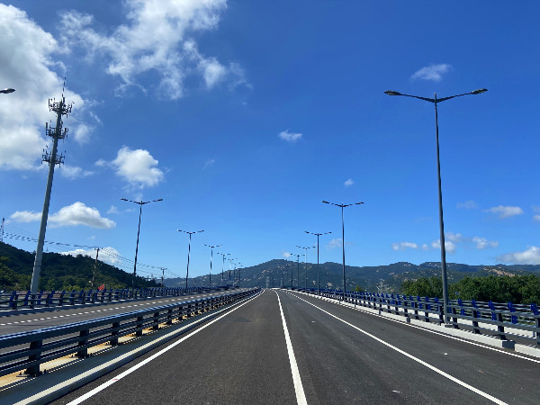 6月19日,匯通公司承建的起步區(qū)智慧物流園二期一標段英才學院南路西段青寧溝橋梁橋面中粒式瀝青攤鋪圓滿完成?! ∮⒉艑W院南路西段青寧溝橋梁采用鋼混組合梁,全長92米,攤鋪面積2000平方米。橋梁不分幅,總寬33米,橋梁為直斜橋,斜交角71°。施工過程中人員分工、機械設備調(diào)配、現(xiàn)場組織管理井然有序,對瀝青攤鋪溫控和厚度、碾壓工藝等進行嚴格把關(guān)。 英才學院南路西段青寧溝橋橋面瀝青攤鋪完成,標志著項目邁入了附屬施工的新階段,為項目建成通車打下堅實基礎。
