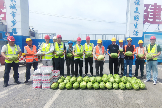 烈日炎炎、驕陽(yáng)似火,進(jìn)入7月以來,連續(xù)多日發(fā)布高溫橙色預(yù)警,為做好高溫期間安全生產(chǎn)工作,保障現(xiàn)場(chǎng)施工安全,匯通集團(tuán)分會(huì)組織開展“夏送清涼”慰問一線活動(dòng),深入工地、走近工友,把清涼送到施工一線、把關(guān)懷送到職工心坎里。 7月6日,分管經(jīng)理袁鵬、綜合辦公室主任馬婕帶領(lǐng)匯通集團(tuán)分會(huì)小組走進(jìn)項(xiàng)目部,開展“夏送清涼”慰問一線活動(dòng),為每個(gè)施工班組送上清熱解渴的礦泉水、西瓜、綠豆等防暑降溫物資,對(duì)炎炎夏日奮戰(zhàn)在一線的廣大職工及勞務(wù)人員表示親切慰問,叮囑一線人員要保證人身安全,適當(dāng)科學(xué)合理安排作息時(shí)間,根據(jù)氣溫情況,避開高溫時(shí)段,切實(shí)做好防暑降溫工作,同時(shí)要求各施工隊(duì)伍堅(jiān)持“安全高于一切、質(zhì)量重于泰山”理